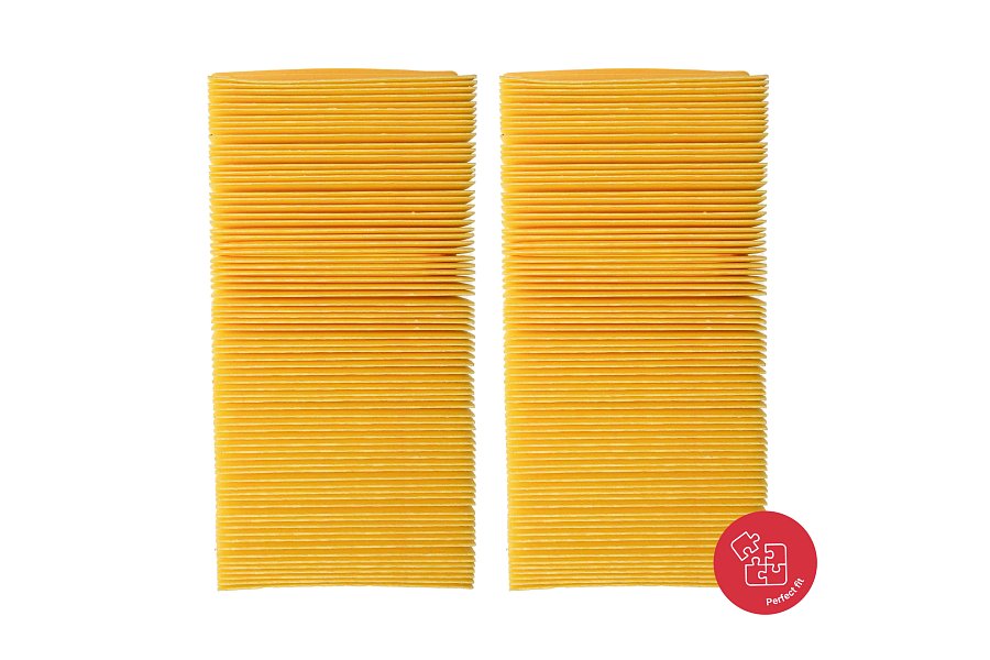 Това е резервен филтър, предназначен за стандартна ежедневна употреба. Няма посочен клас на филтрация и е предназначен единствено за прахосмукиране на обикновен смесен прах. За прахосмукиране на токсични или опасни вещества използвайте оригиналния филтър с сертифициран филтрационен клас M, L или H. Съвместим с оригинални аксесоари Kärcher 6.904-283.0. Пакетът съдържа 2 бр.