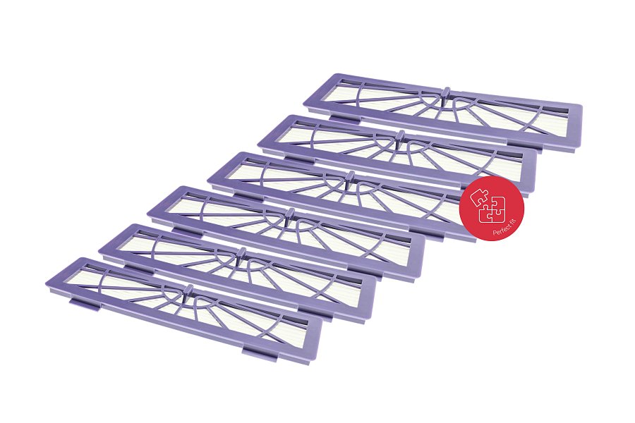 Това е резервен филтър, предназначен за стандартна ежедневна употреба. Няма посочен клас на филтрация и е предназначен единствено за прахосмукиране на обикновен смесен прах. За прахосмукиране на токсични или опасни вещества използвайте оригиналния филтър с сертифициран филтрационен клас M, L или H. Съвместим с оригинални аксесоари NEATO BOTVAC. Пакетът съдържа 6 бр.